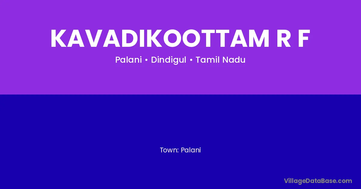 Palani is the nearest town to Kavadikoottam R F village for major economic activities