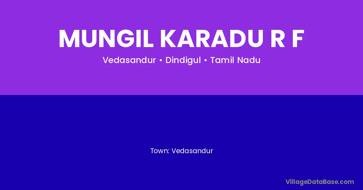 Mungil Karadu R F village is located in the Vedasandur Taluka of the Dindigul district in Tamil Nadu .