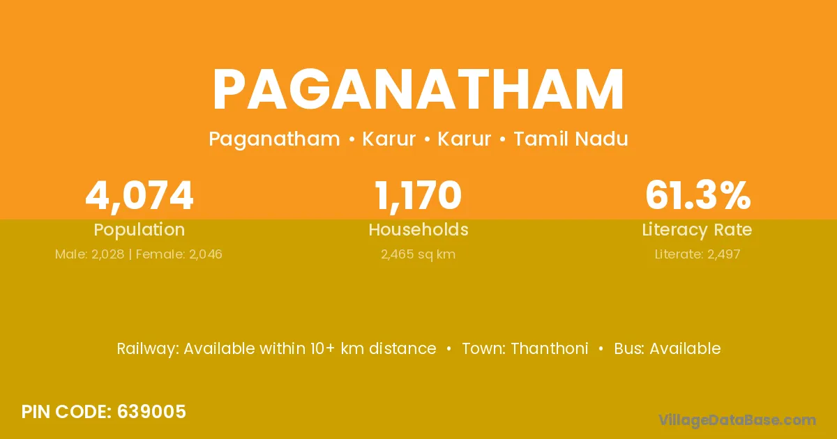 According to Census 2011 information, the village code of Paganatham village is 624702.