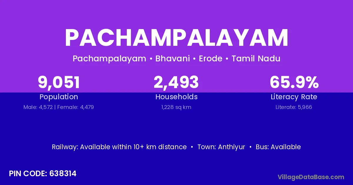 According to Census 2011 information, the village code of Pachampalayam village is 638314.
