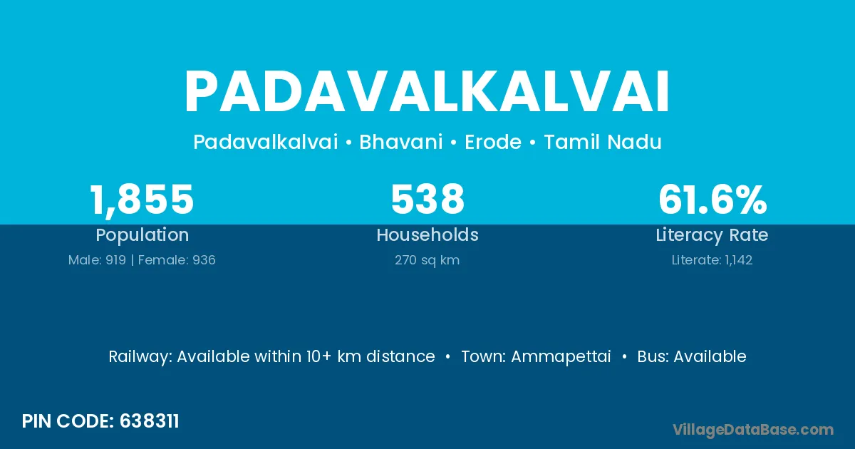 According to Census 2011 information, the village code of Padavalkalvai village is 638311.