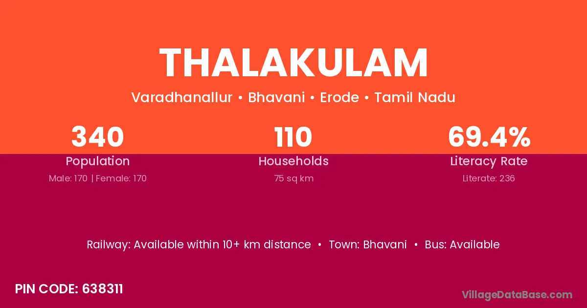 Bhavani is the nearest town to Thalakulam village for major economic activities