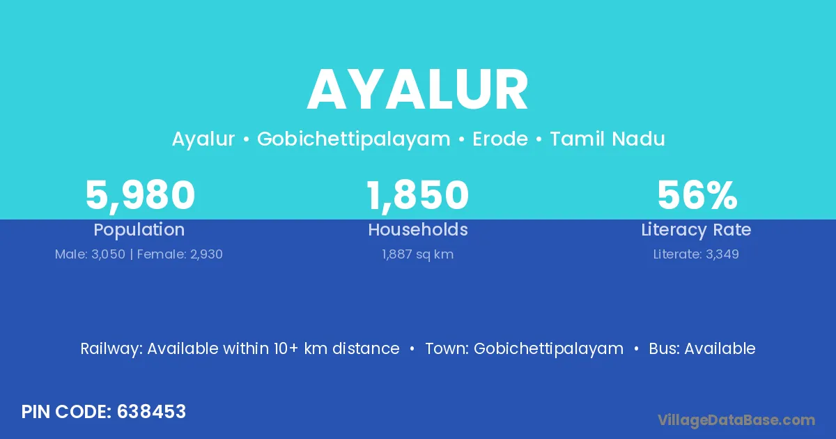 Gobichettipalayam is the nearest town to Ayalur village for major economic activities