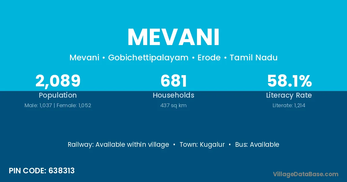 According to Census 2011 information, the village code of Mevani village is 638313.