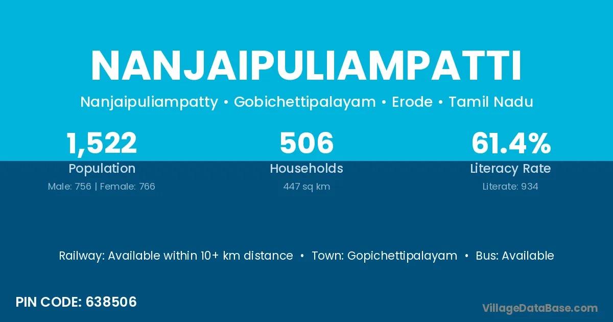 Gopichettipalayam is the nearest town to Nanjaipuliampatti village for major economic activities