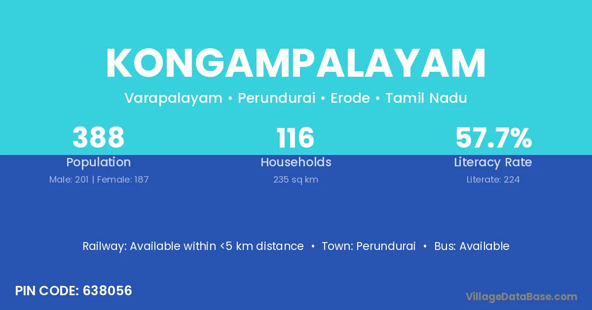 According to Census 2011 information, the village code of Kongampalayam village is 638056.