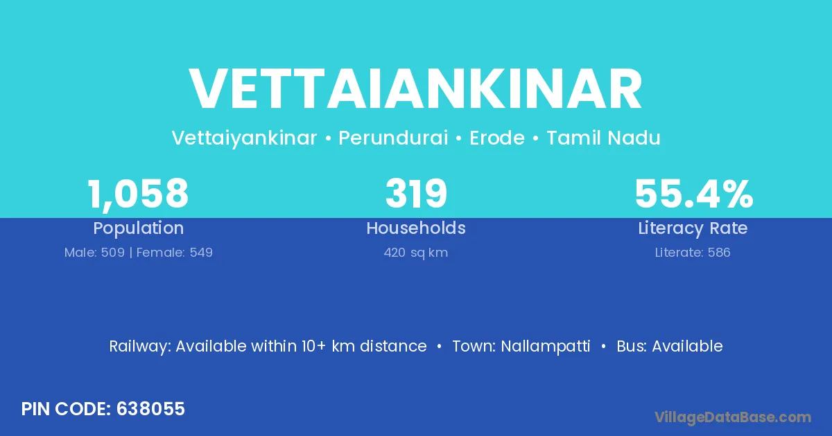 According to Census 2011 information, the village code of Vettaiankinar village is 638055.