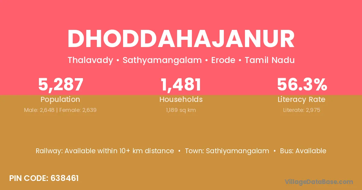 Sathiyamangalam is the nearest town to Dhoddahajanur village for major economic activities