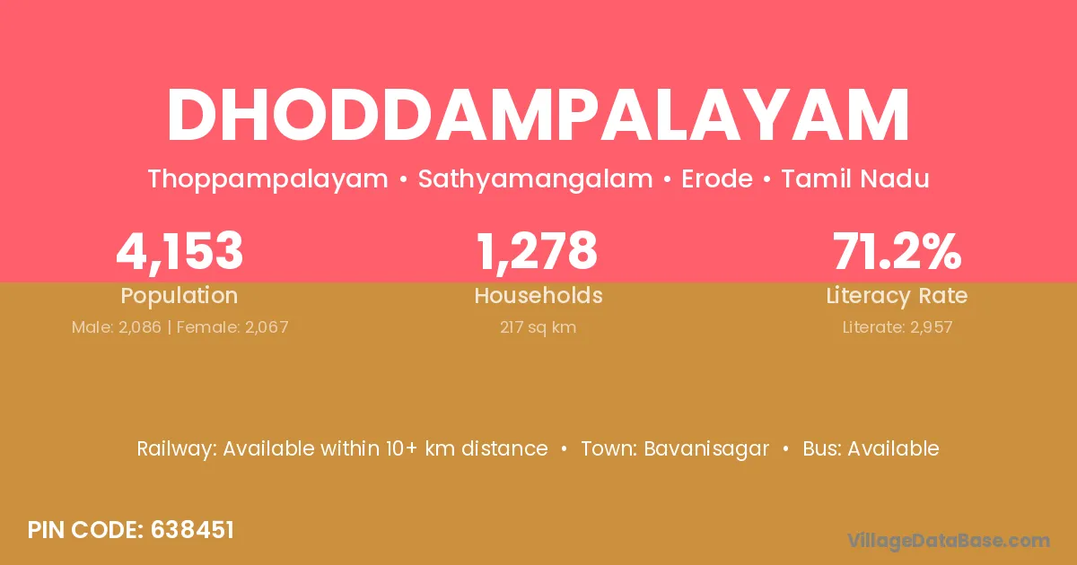 Bavanisagar is the nearest town to Dhoddampalayam village for major economic activities