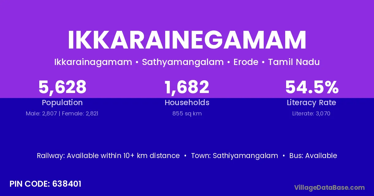 Sathiyamangalam is the nearest town to Ikkarainegamam village for major economic activities