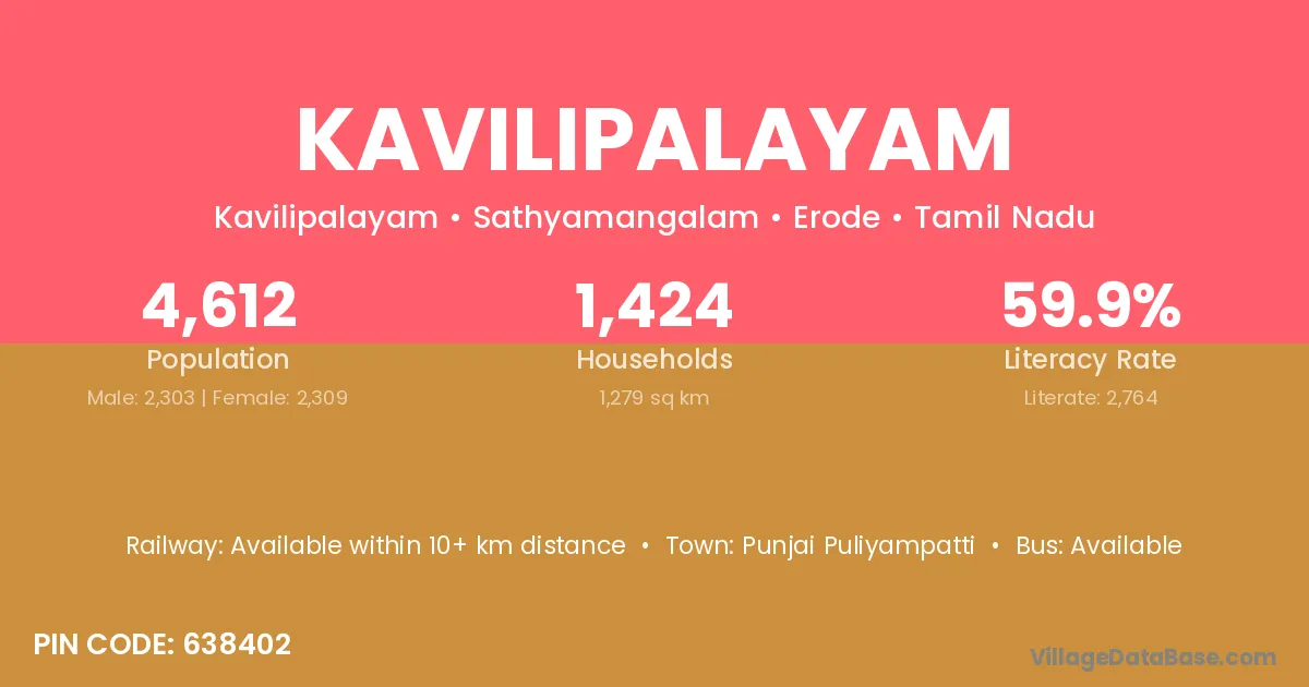 According to Census 2011 information, the village code of Kavilipalayam village is 638402.