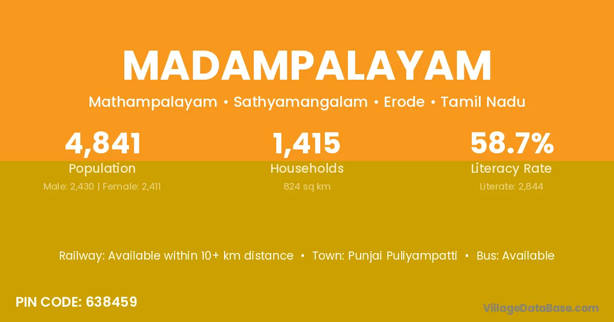 According to Census 2011 information, the village code of Madampalayam village is 638459.