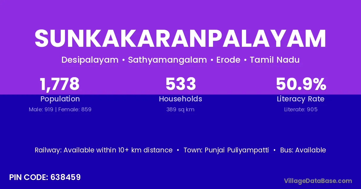 According to Census 2011 information, the village code of Sunkakaranpalayam village is 638459.