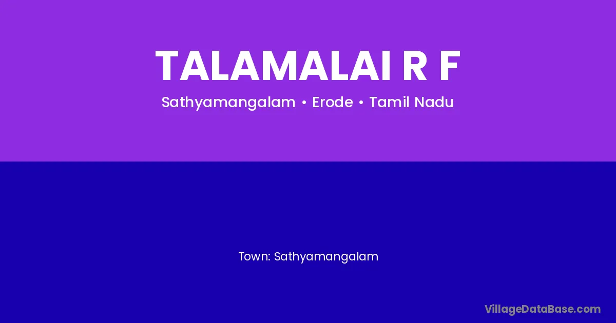 Sathyamangalam is the nearest town to Talamalai R F village for major economic activities