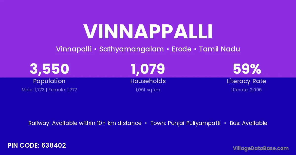 According to Census 2011 information, the village code of Vinnappalli village is 638402.