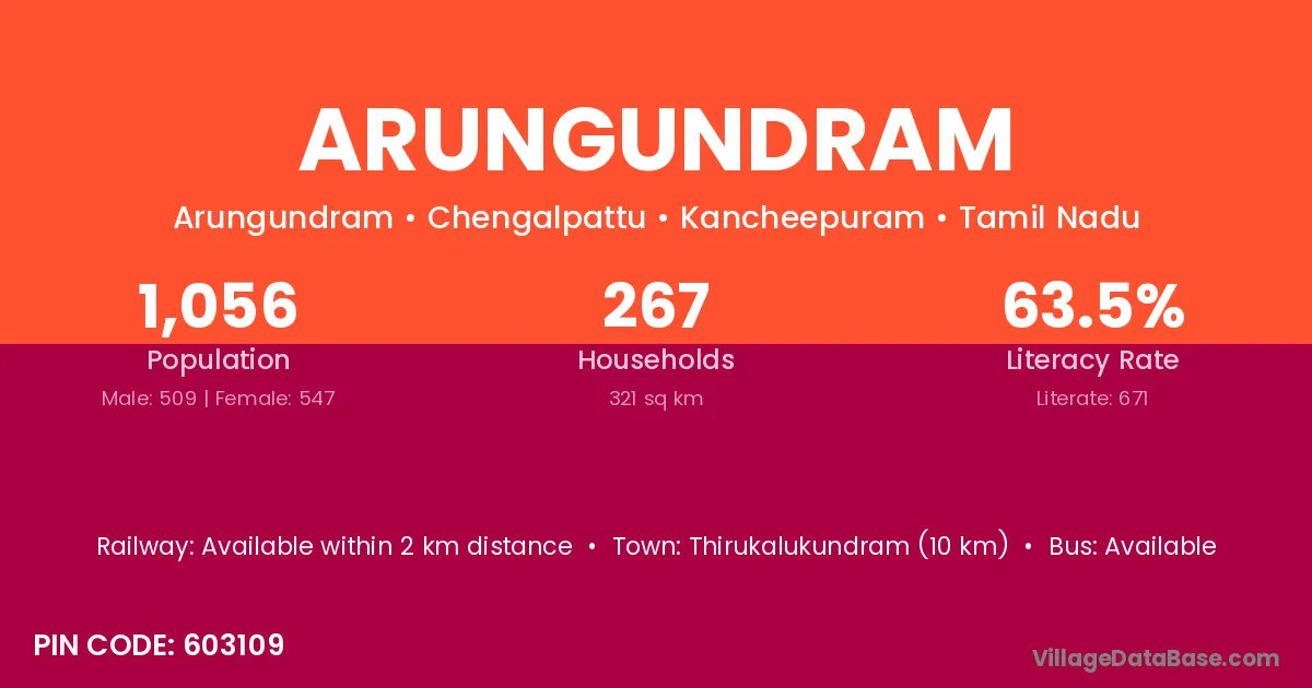 Arungundram village has a total population of 1,056 people, of which 509 are males and 547 are females.