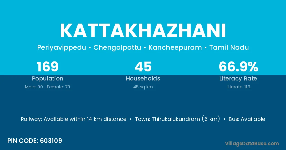 Thirukalukundram (6 km) is the nearest town to Kattakhazhani village for major economic activities and is located approximately 6 km away.