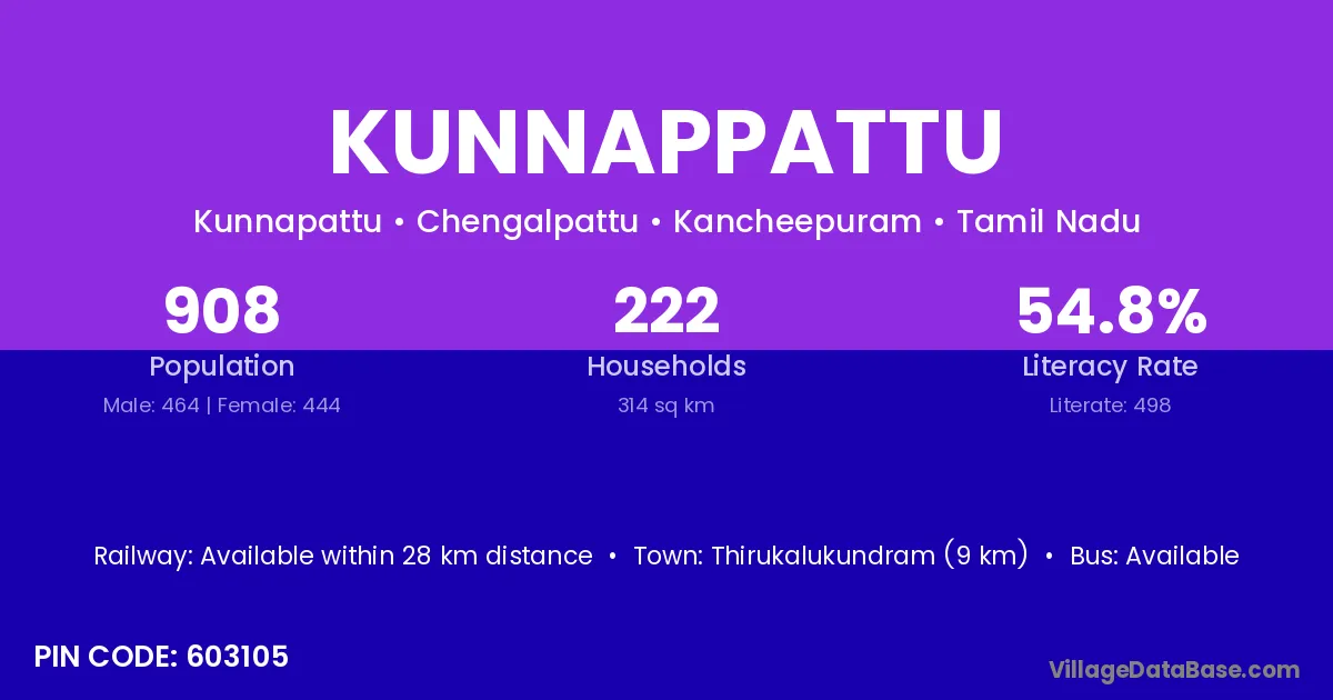 Thirukalukundram (9 km) is the nearest town to Kunnappattu village for major economic activities and is located approximately 9 km away.