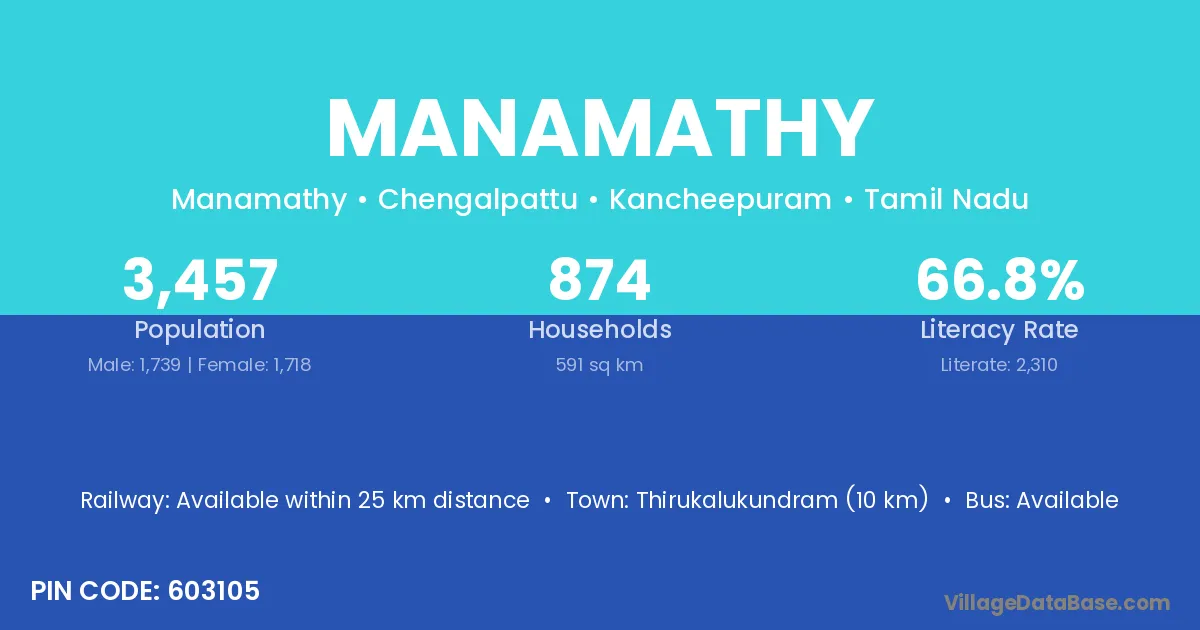According to Census 2011 information, the village code of Manamathy village is 603105.