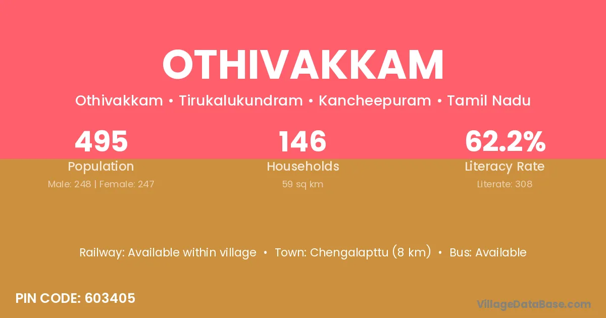 Othivakkam village has a total population of 803 people, of which 408 are males and 395 are females.