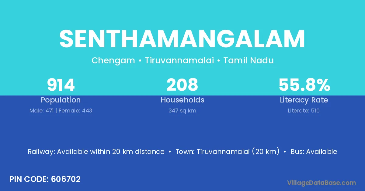 Maraimalainagar (10 km) is the nearest town to Senthamangalam village for major economic activities and is located approximately 10 km away.