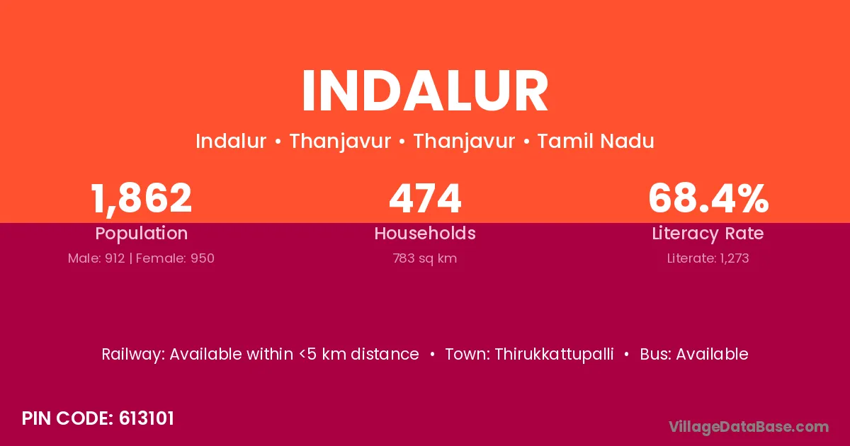 Acharapakkam (8 km) is the nearest town to Indalur village for major economic activities and is located approximately 8 km away.