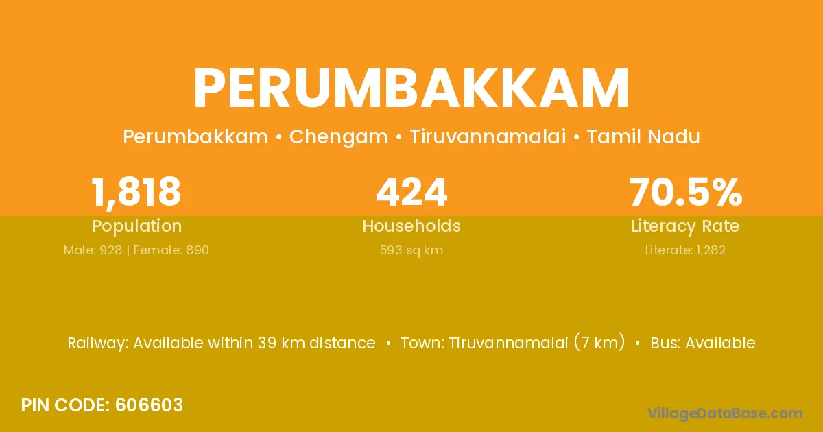 There are approximately 604 households in Perumbakkam village.