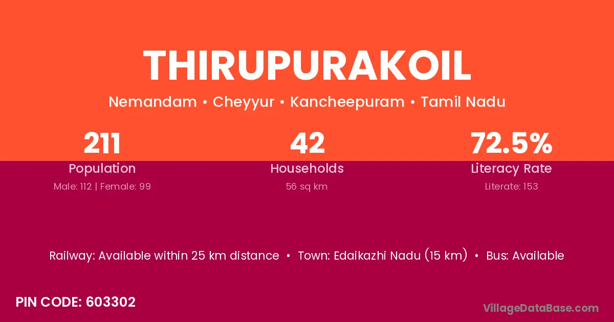 According to Census 2011 information, the village code of Thirupurakoil village is 603302.