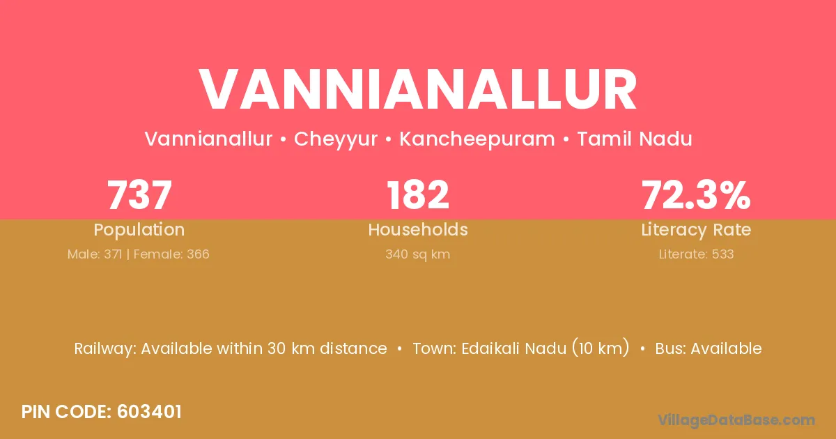 Vannianallur village has a total population of 737 people, of which 371 are males and 366 are females.