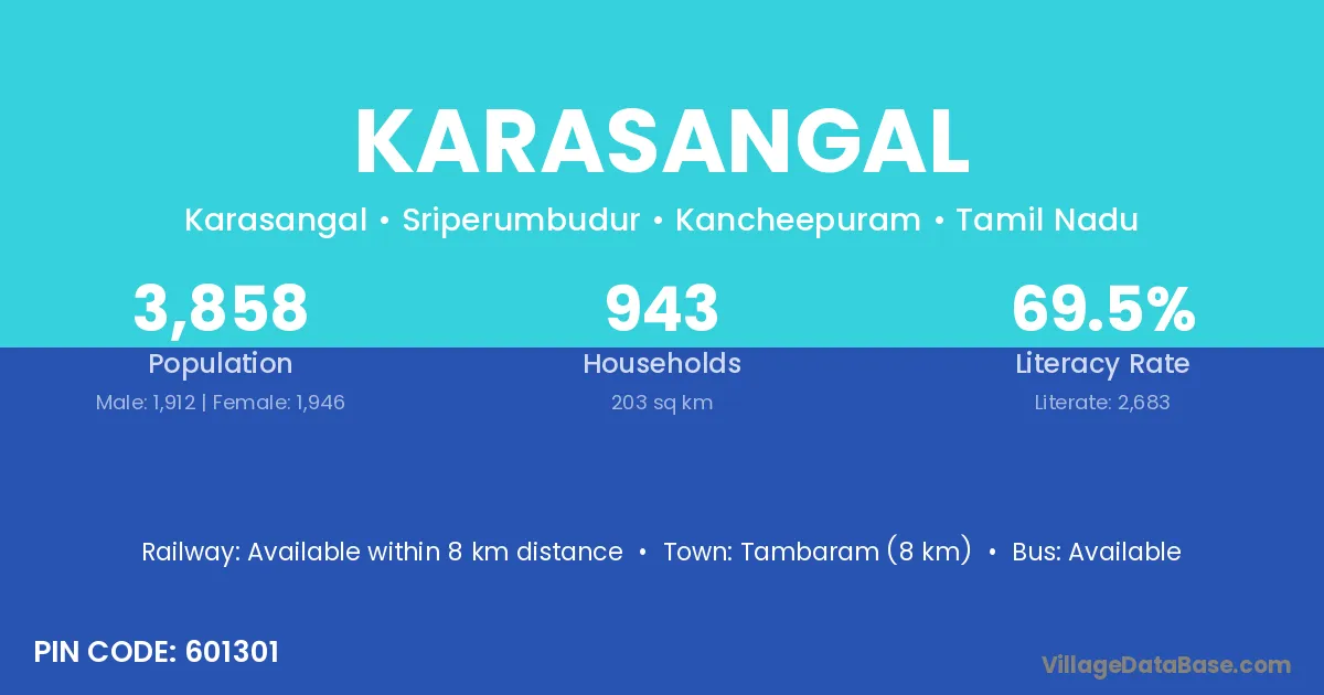 Acharapakkam (12 km) is the nearest town to Karasangal village for major economic activities and is located approximately 12 km away.