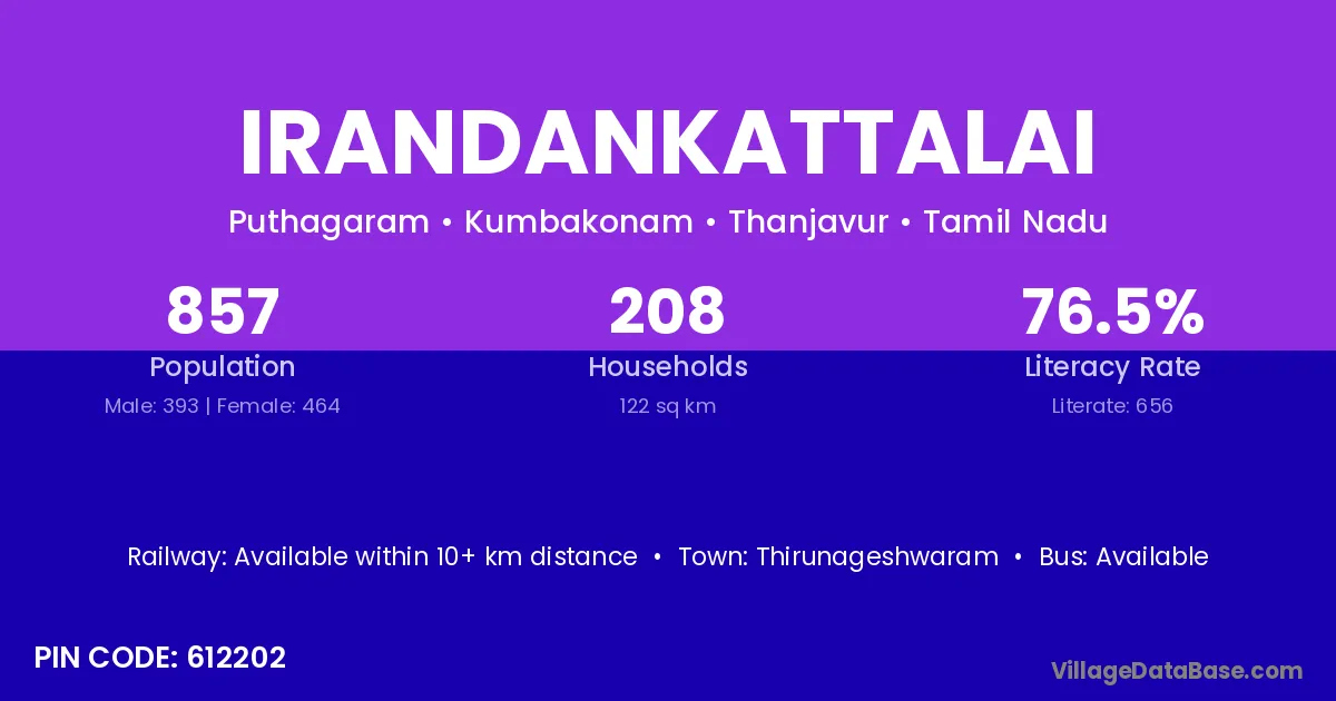 The population of Irandankattalai village is distributed between literate and illiterate residents as follows: