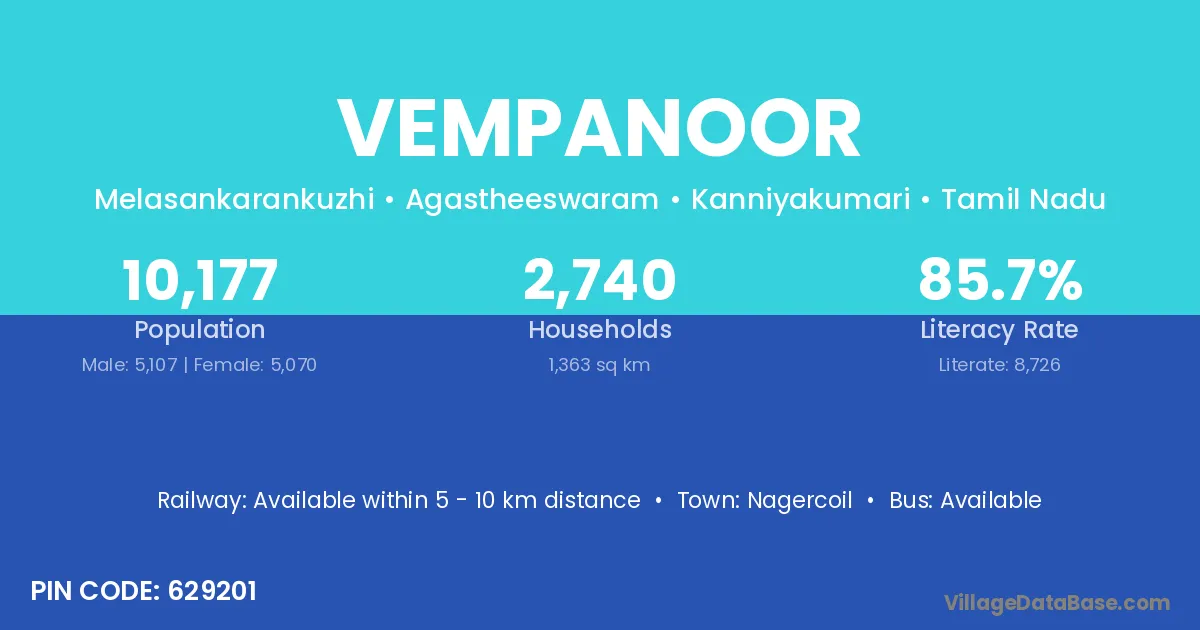 Nagercoil is the nearest town to Vempanoor village for major economic activities