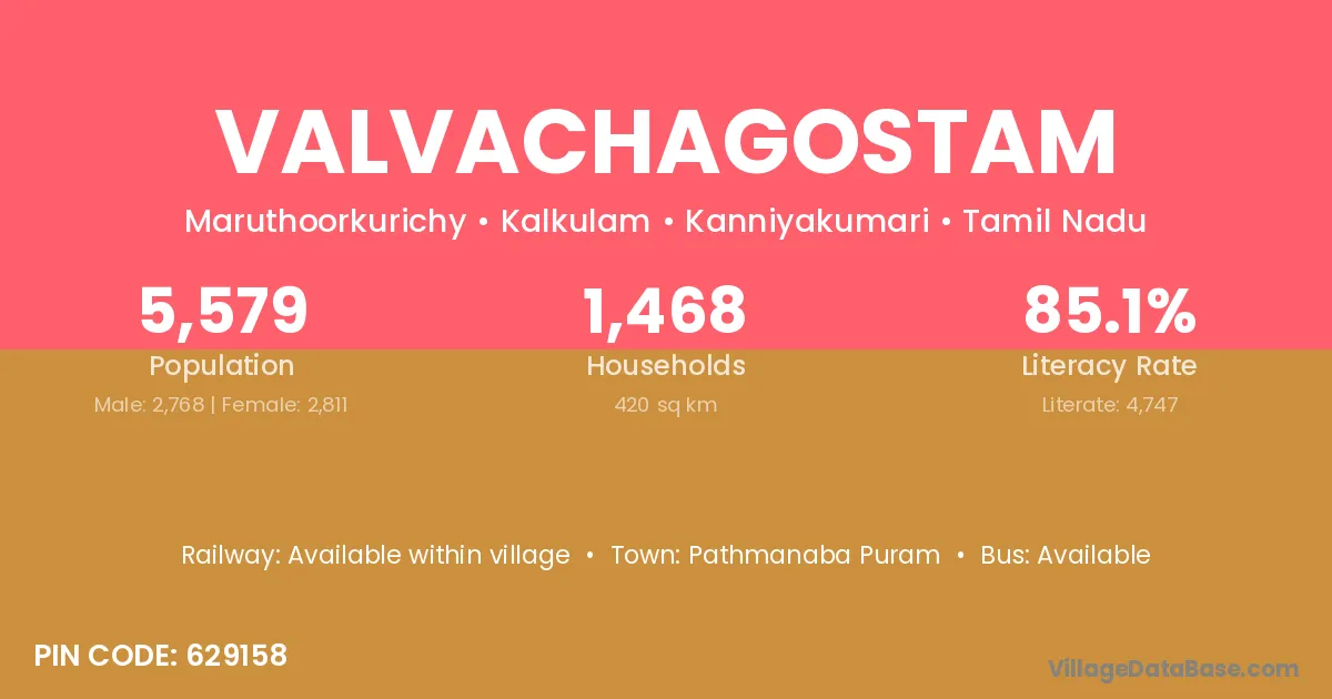 Pathmanaba Puram is the nearest town to Valvachagostam village for major economic activities