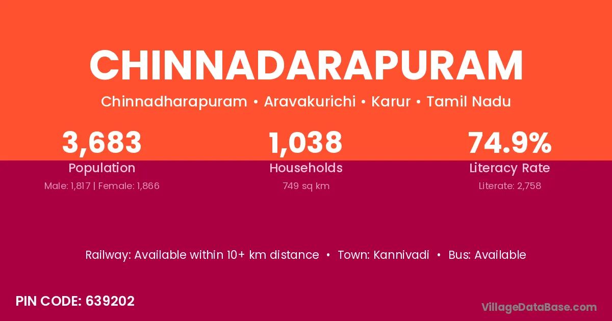 Chinnadarapuram village has a total population of 3,683 people, of which 1,817 are males and 1,866 are females.