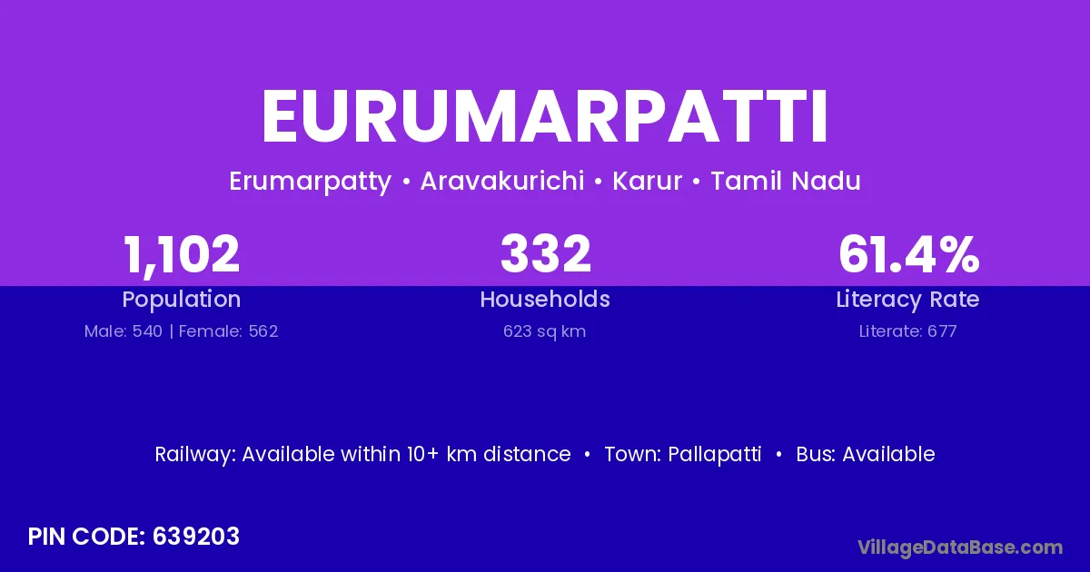 Eurumarpatti village has a total population of 1,102 people, of which 540 are males and 562 are females.