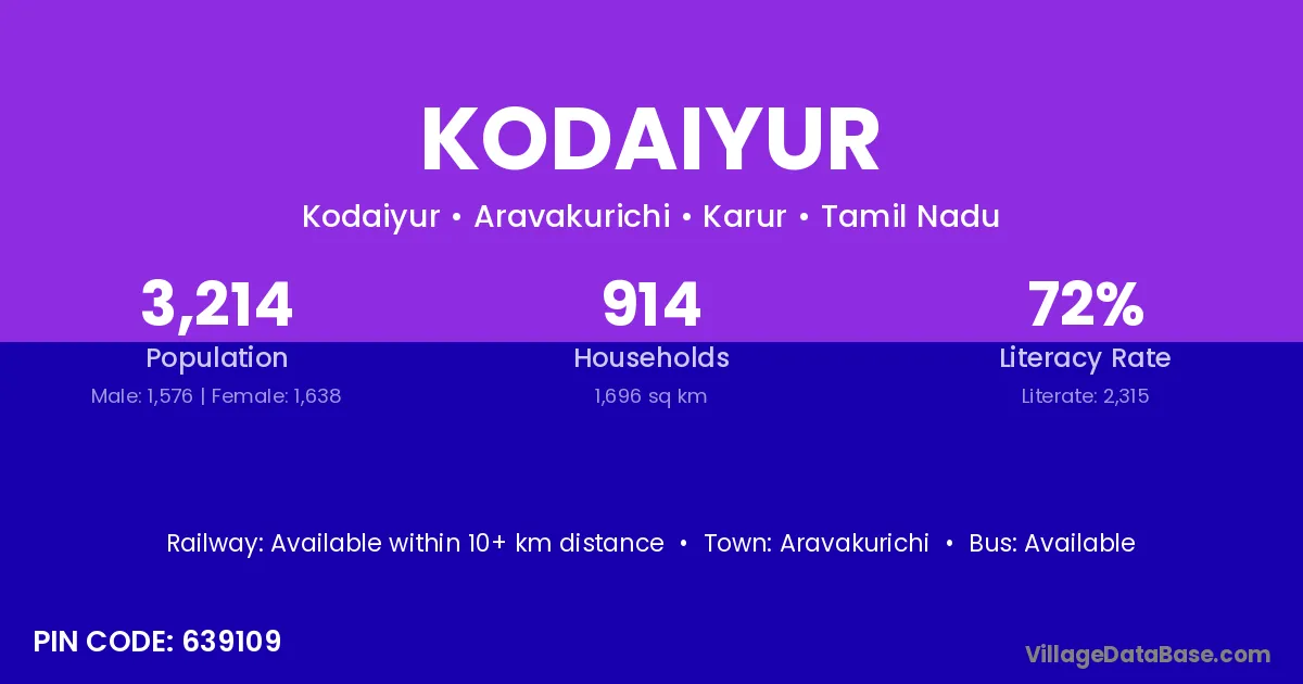 Aravakurichi is the nearest town to Kodaiyur village for major economic activities
