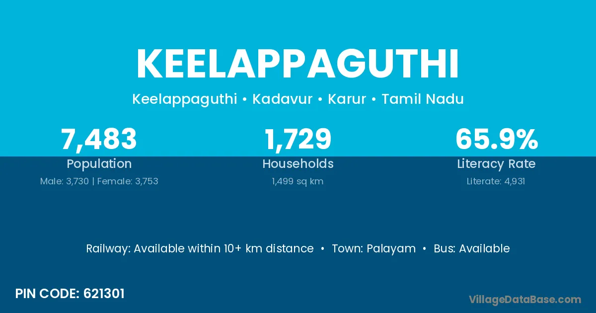 According to Census 2011 information, the village code of Keelappaguthi village is 621301.