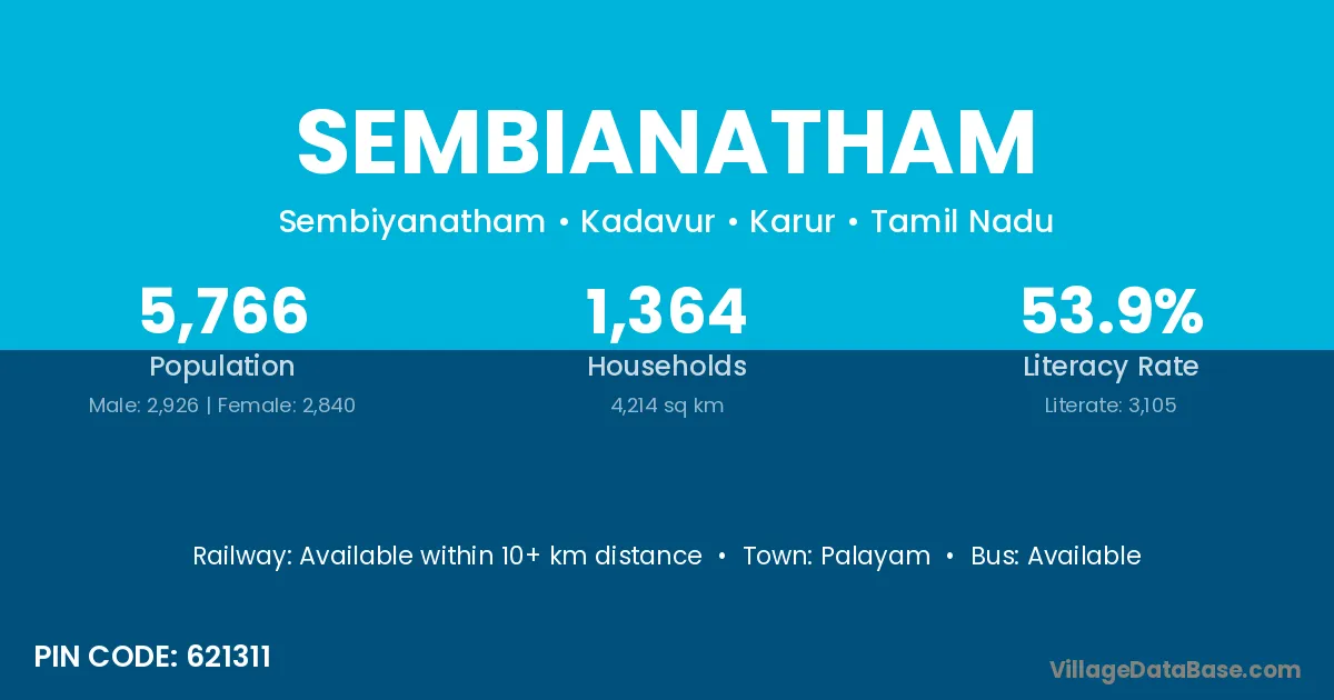 According to Census 2011 information, the village code of Sembianatham village is 621311.