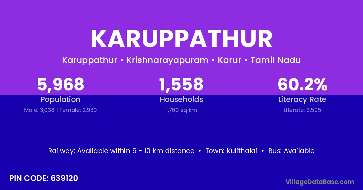 Kulithalai is the nearest town to Karuppathur village for major economic activities