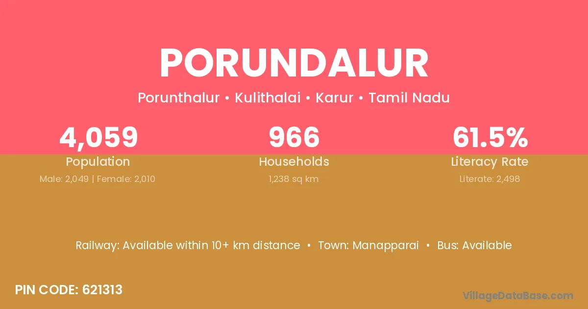 There are approximately 966 households in Porundalur village.