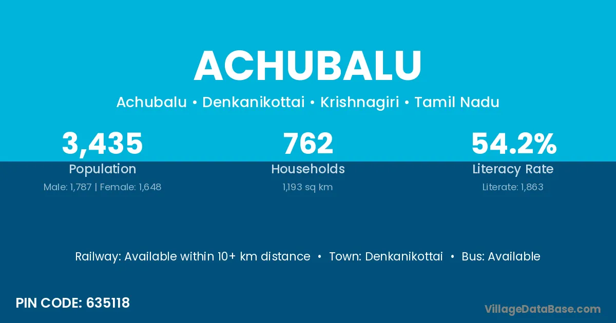 Denkanikottai is the nearest town to Achubalu village for major economic activities