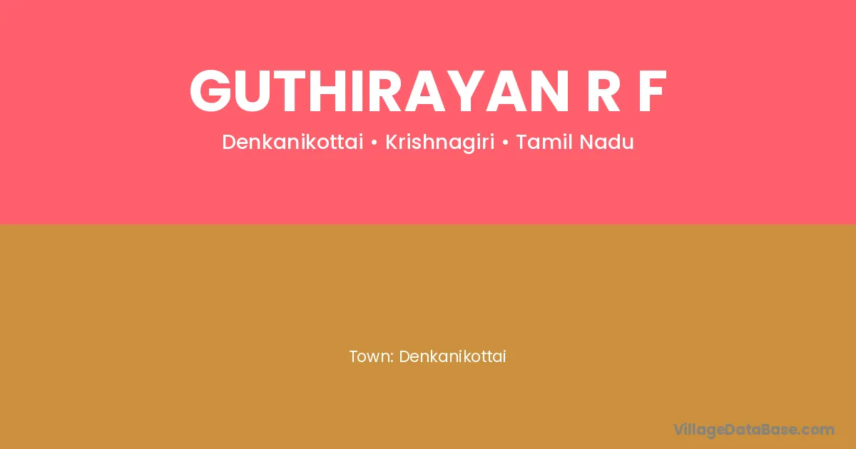 Denkanikottai is the nearest town to Guthirayan R F village for major economic activities