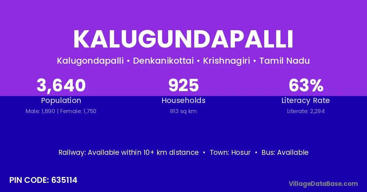 Hosur is the nearest town to Kalugundapalli village for major economic activities