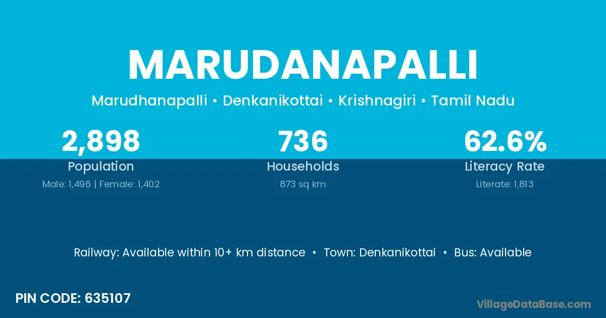 Denkanikottai is the nearest town to Marudanapalli village for major economic activities