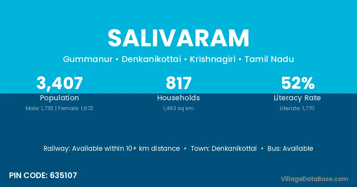 Denkanikottai is the nearest town to Salivaram village for major economic activities