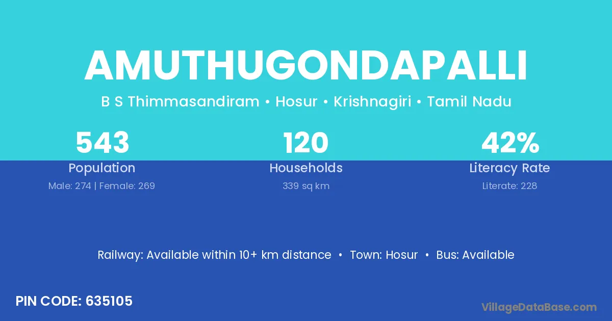 Hosur is the nearest town to Amuthugondapalli village for major economic activities