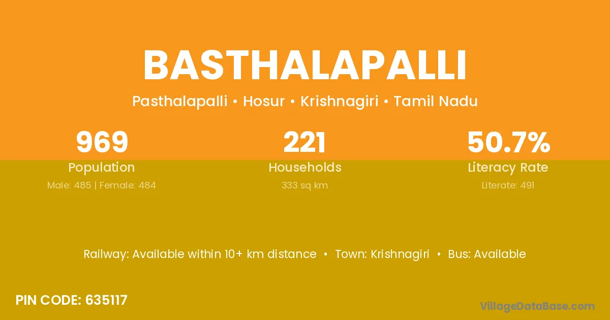 Krishnagiri is the nearest town to Basthalapalli village for major economic activities