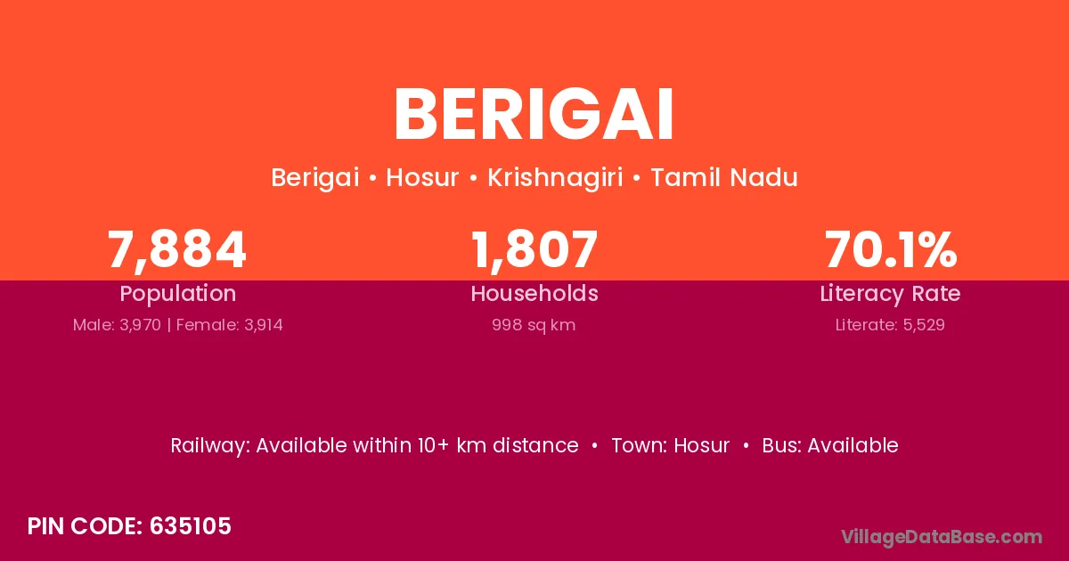 Hosur is the nearest town to Berigai village for major economic activities