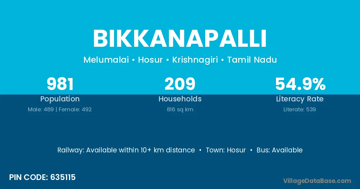 Hosur is the nearest town to Bikkanapalli village for major economic activities