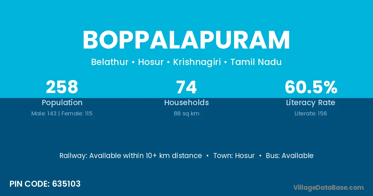 Hosur is the nearest town to Boppalapuram village for major economic activities